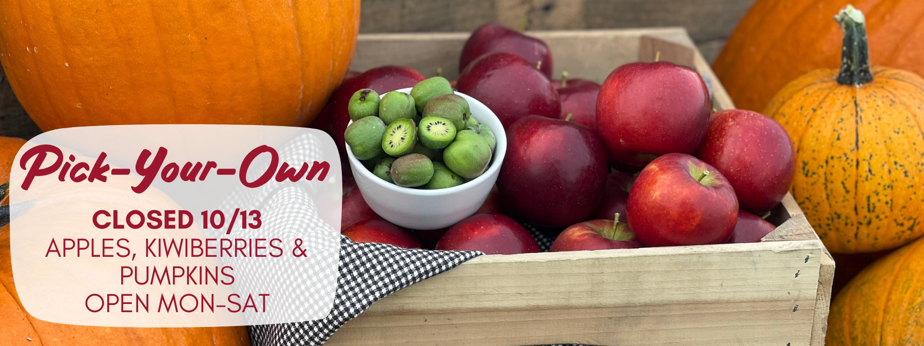 Experience pick-your-own fruit season here, which starts in June with strawberries. Other crops you can enjoy throughout the season include red and black raspberries, sweet and tart cherries, blueberries, blackberries, apricots, plums, peaches, nectarines, apples, pears, quince, pumpkins kiwiberries, sunflowers and more until the season wraps up in late October. We use an Integrated Pest Management approach with our farming practices that employs many preventative and organic methods to ensure that our crops and our land remain healthy.