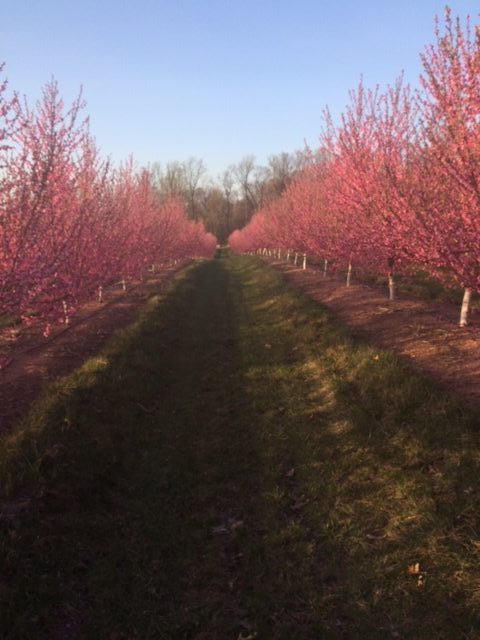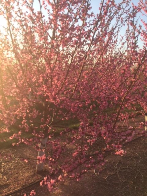 As I was walking through this breathtaking row of donut peach trees in bloom, the thought occurred to me that these blooms are a lot like seasons of life. They are here for a moment and then gone. Soon these trees will drop their petals and fruit will start growing– then it will be hard to imagine the blooms, but with each season there is still something beautiful about a tree.