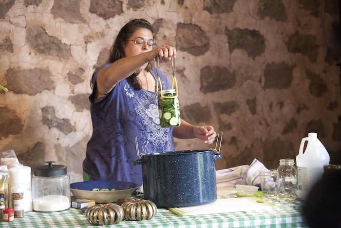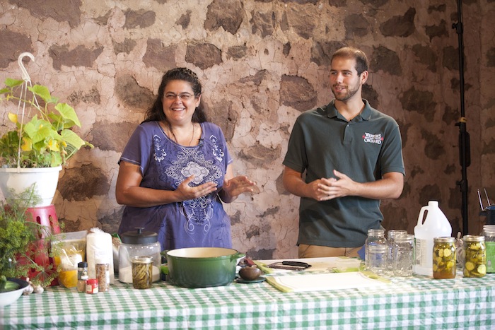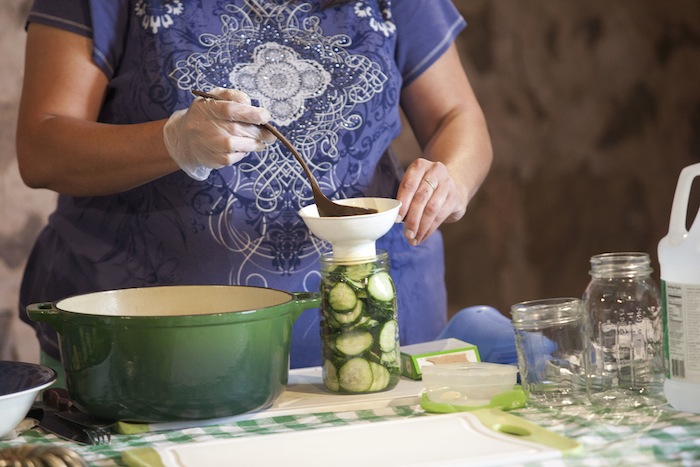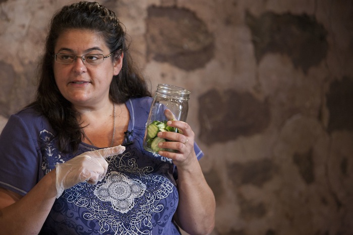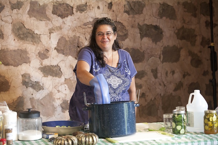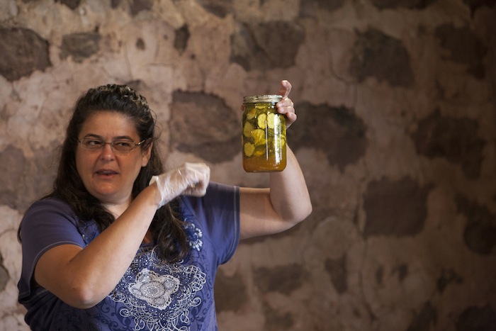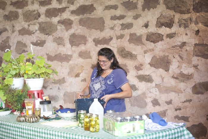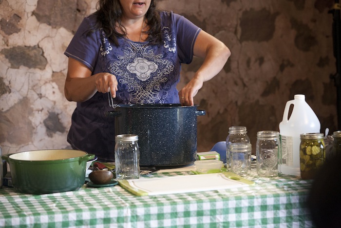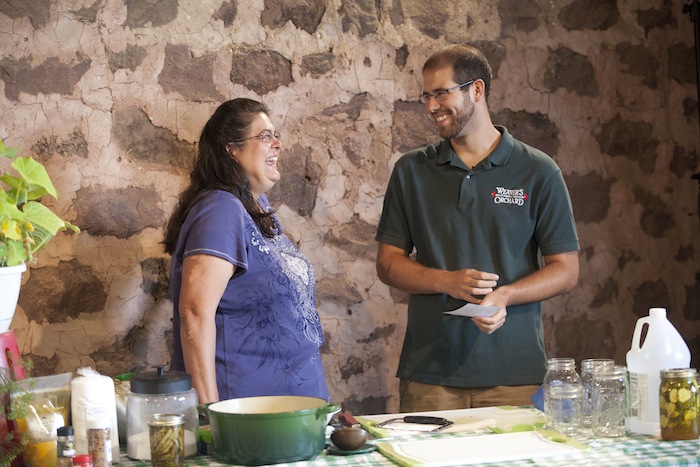 Nan Reinert of Chubby Pickle Farm has some advice about pickle making: “Start with refrigerator pickles, move on to dill…then pickle everything!” At the Weaver’s Orchard Cooking Class she led on Tuesday, July 29, Nan started by making refrigerator pickles, moved on to dill, and then gave helpful hints on everything, including canning.