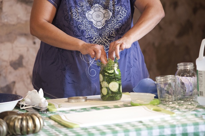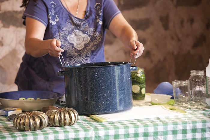 To make dill pickles, follow Nan’s instructions for Canning Basics. After you’ve cleaned your kitchen and turned it into a “sanitary zone,” Nan recommends washing your face as well. With all that water boiling away in your kitchen, you’ll get a world-class steam facial!