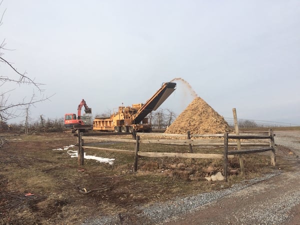 Woodchips are pure gold here on our farm. They make an excellent weed deterrent between our trees and bushes, minimizing our need to use herbicide. Grinding up old trees is a method of recycling. Rather than wastefully burning them, we can repurpose the wood into a useful tool here on our farm.