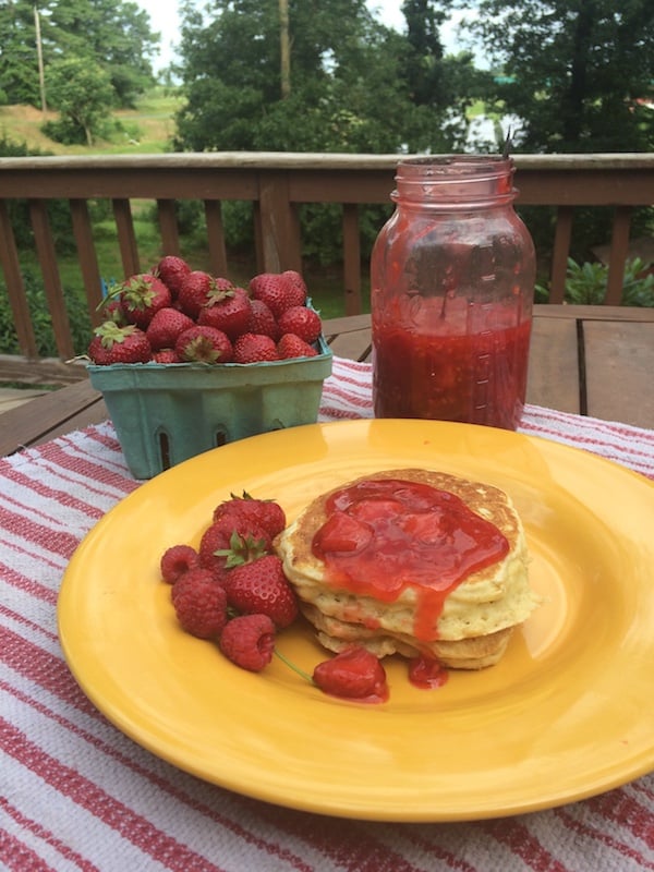 No pancake is complete without a good quality syrup, and while we love maple, one of our kids is allergic to it, so we’ve come up with this tasty modification. I’m not sure you’ll want to go back to traditional syrup once you’ve tried this!