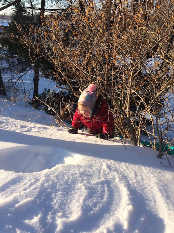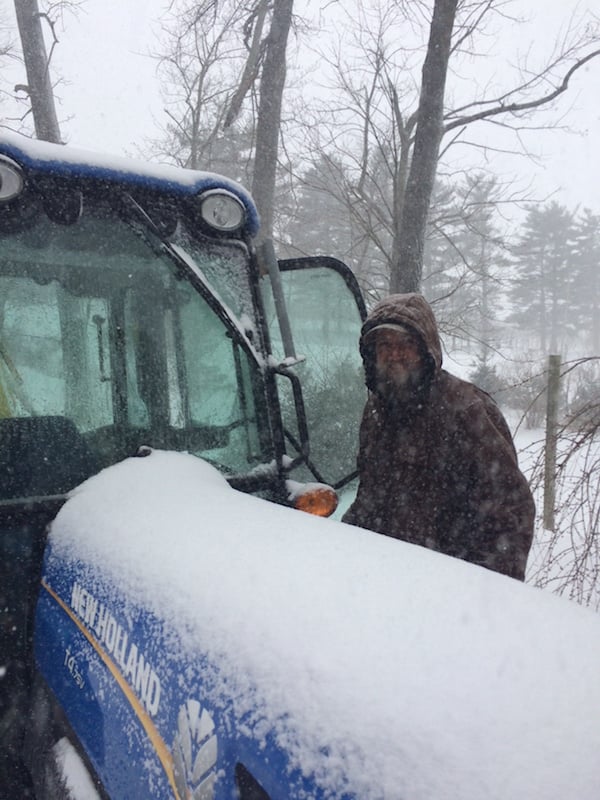 When life gives you lemons, you make lemonade– and when snow comes in March, well, you go sledding! And we did. Justin makes the best sledding trails with the tractor. We invited the neighbors who were able to get here on foot to come and frolic in the ice with us. It was a constant, sometimes exhausting effort to keep the children in dry snow gear. But it was so worth it! Though my seven year old did not get off school for a week, he was able to sled for six days straight—that seemed enough to make him happy!