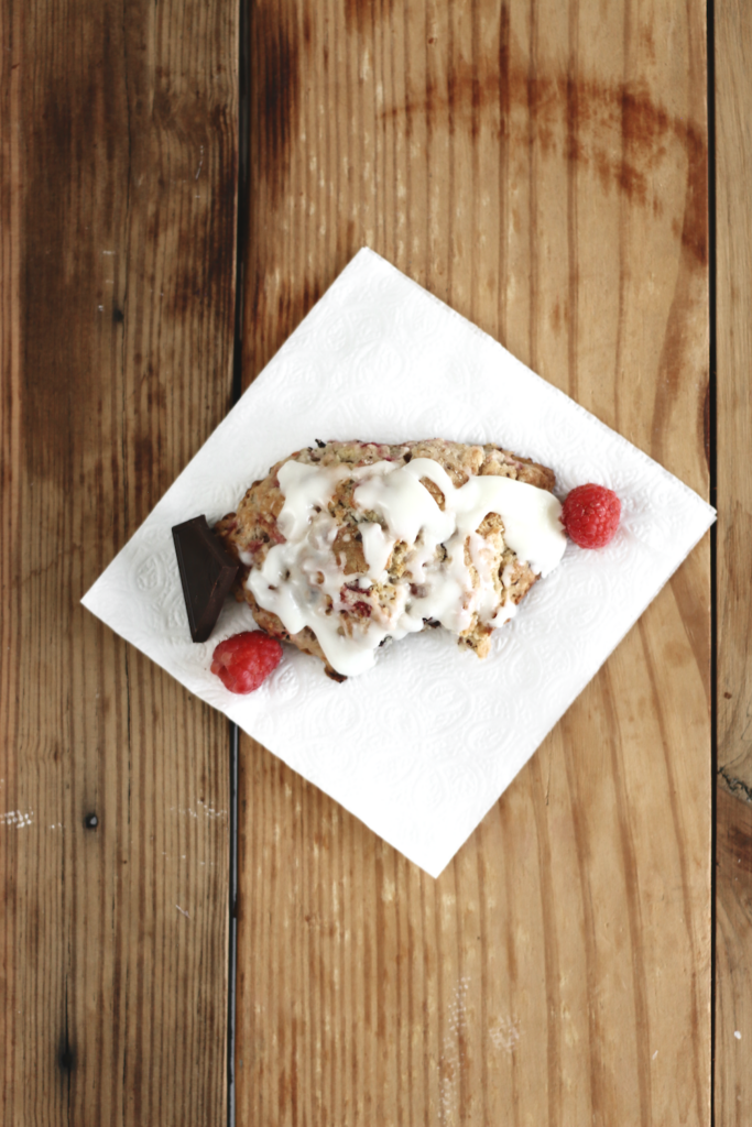 When it came to baking pastries, I never used to give scones the credit they deserved. I was too accustomed to store bought scones, which were dry at best and flavorless at worst. It wasn’t until I started making my own that I realized just how moist, sweet, and delicate a scone could be when prepared at home using fresh ingredients. The flavors featured in this scone—honey, raspberry, and dark chocolate—present the perfect combination to enjoy as we enter the warmer months.